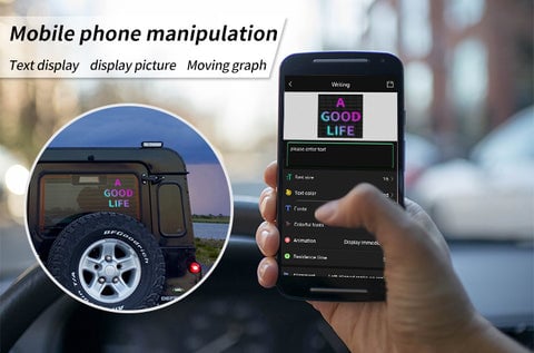 Connect your phone and display any photo, GIF or video on your window. You can also show texts and customize fonts, size, text color, background color and choose from many effects.